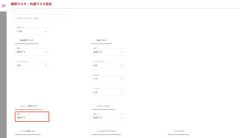 - コース分類マスタの権限を設定する