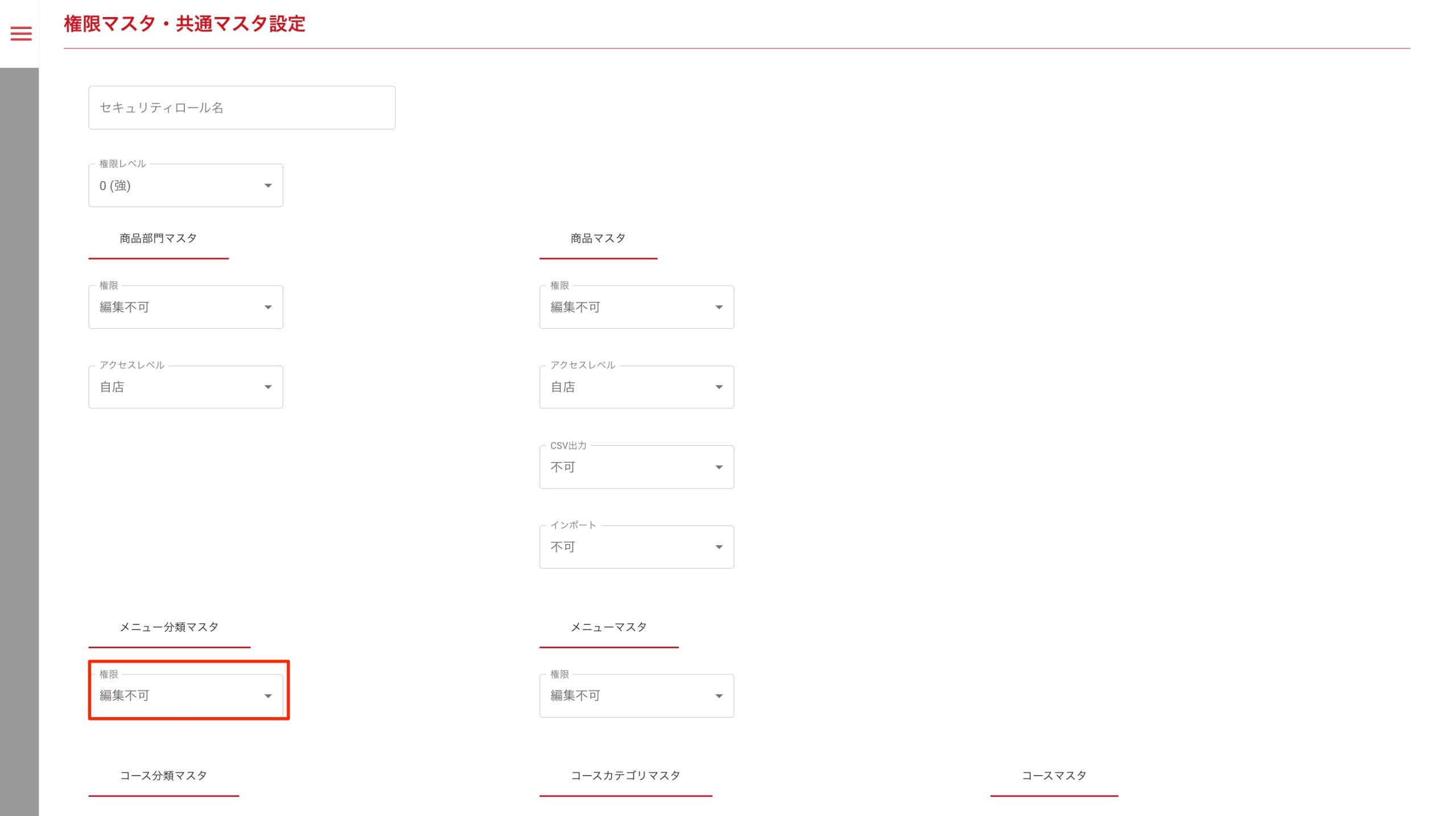 コース分類マスタの権限を設定する